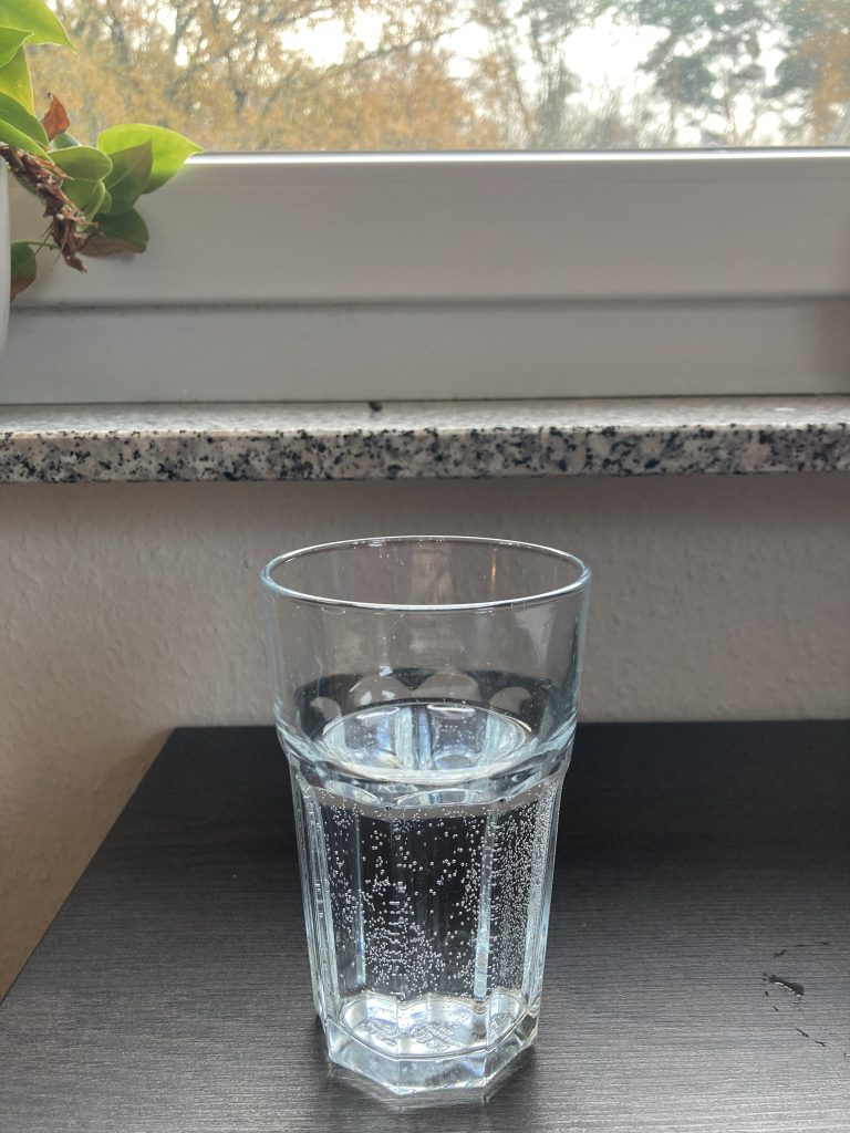 Deshalb habe ich damit angefangen morgens erstmal ein Glas Wasser zu trinken. Ich habe mir da anfangs abends echt eine Notiz ins Handy gemacht, die morgens aufpoppt. Hierbei habe ich dann noch eine spannende Erfahrung gemacht: Wenn ich etwas morgens schon gemacht habe, denke ich auch am Tag eher dran und das hat dann echt dazu geführt, dass ich auch tagsüber mehr trinke.